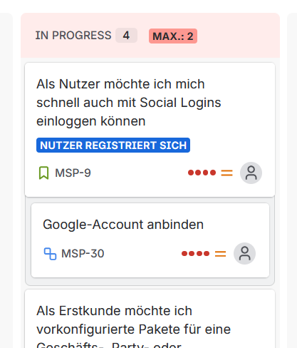 - Regelmäßige Events (Dailys, Retrospektiven) für euch sinnvoll sind